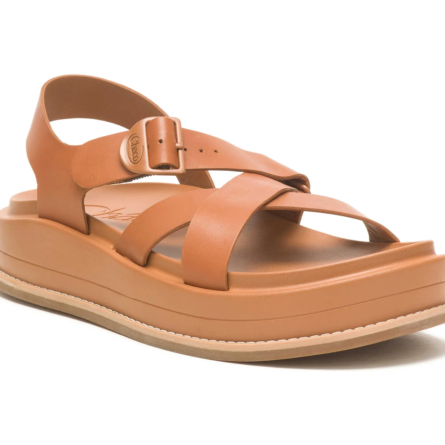 - Signature metal Chaco buckle fastens full-grain leather straps